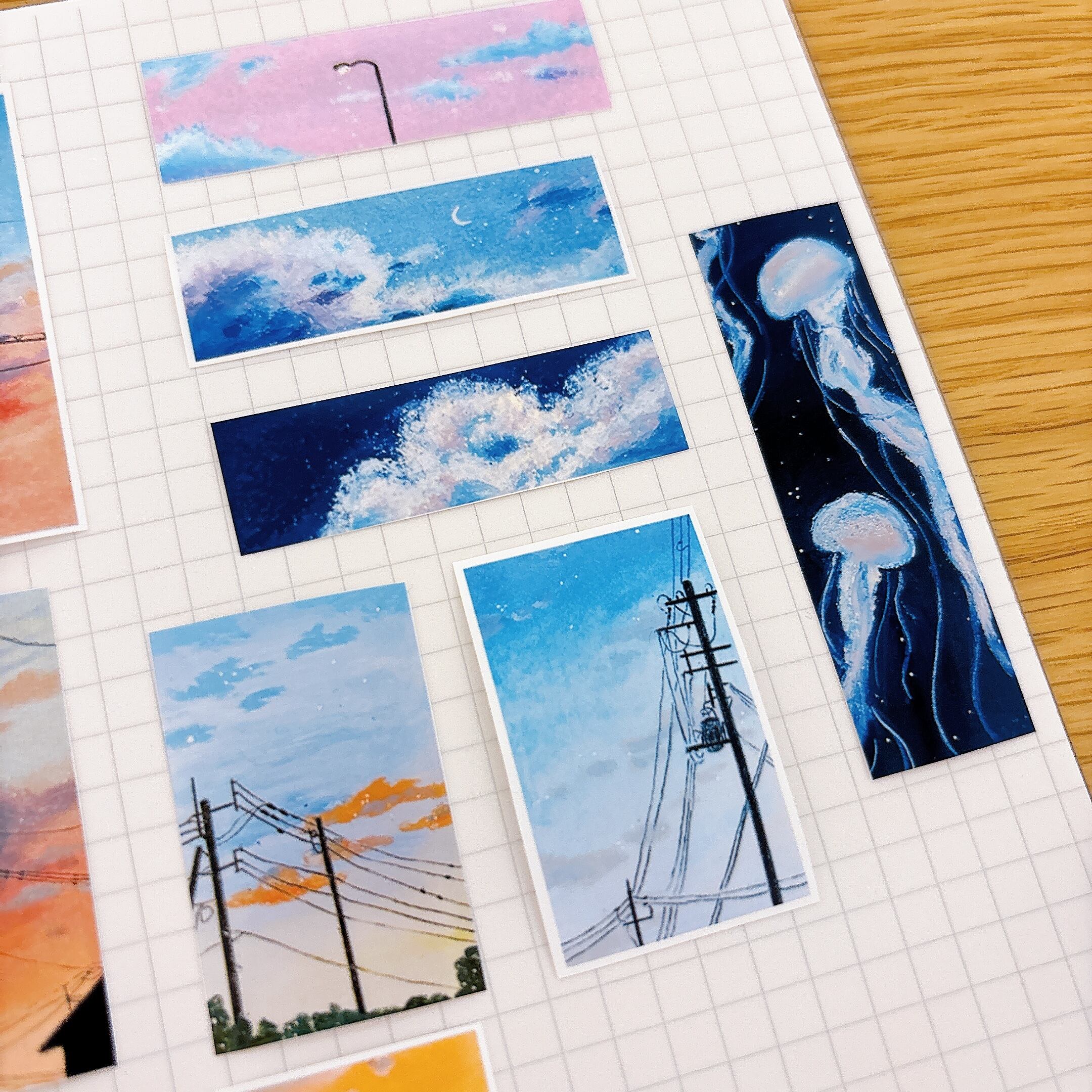空をテーマにしたデザインのシールセットです。様々な空や雲の景色を表現したシールが詰まっています。このシールを使って、手帳やノートを彩って新しい世界観を楽しんでいただければと思います。